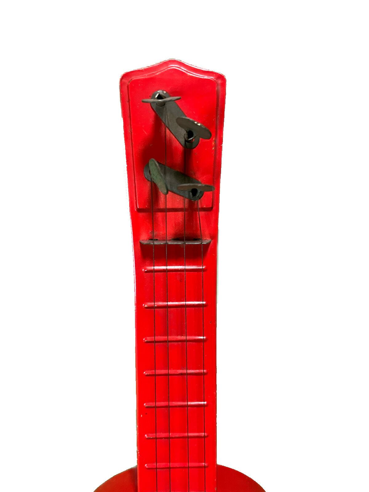 鮮やかな赤色にレトロな絵柄、サイズ感までもが可愛いウクレレです。