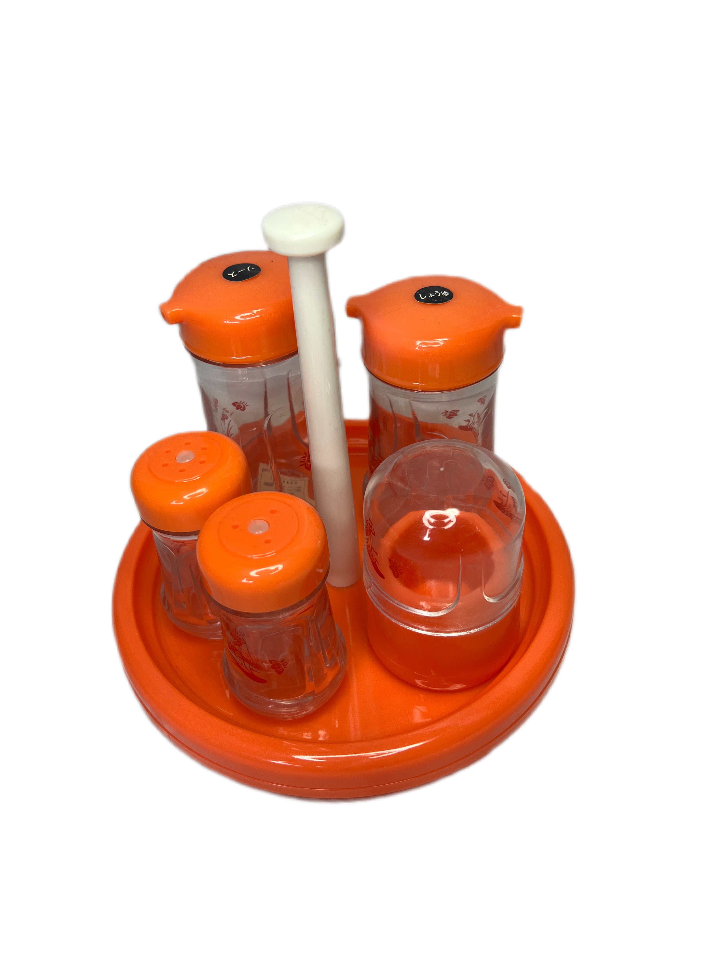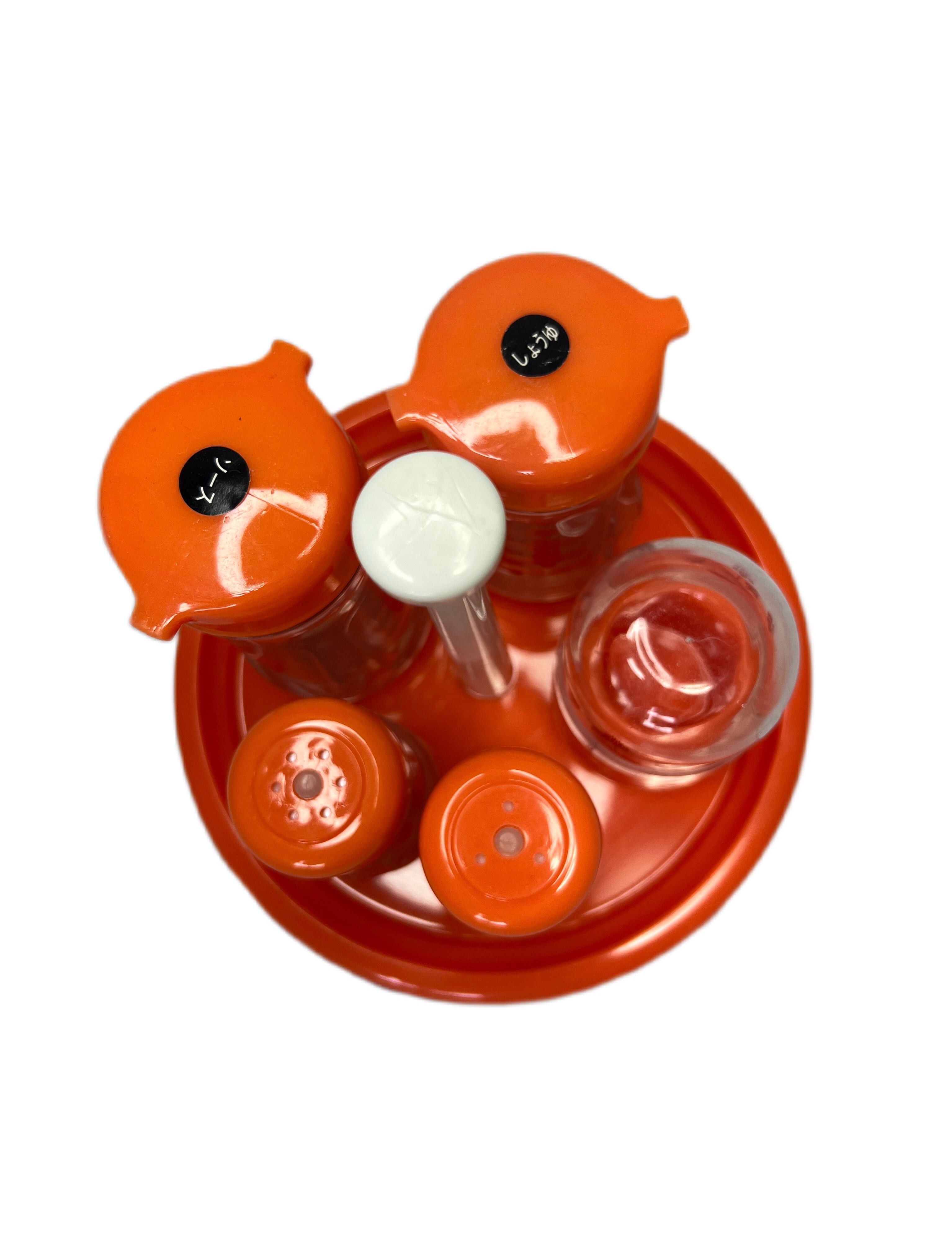 ポップなオレンジ色が目を惹く調味料入れセットです。