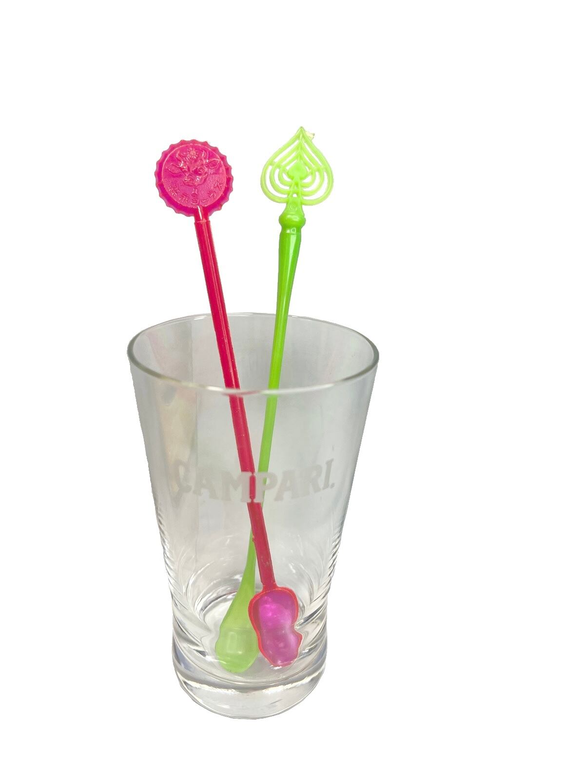 ポップなピンク色と黄緑色が可愛いプラスチック製のマドラーです。