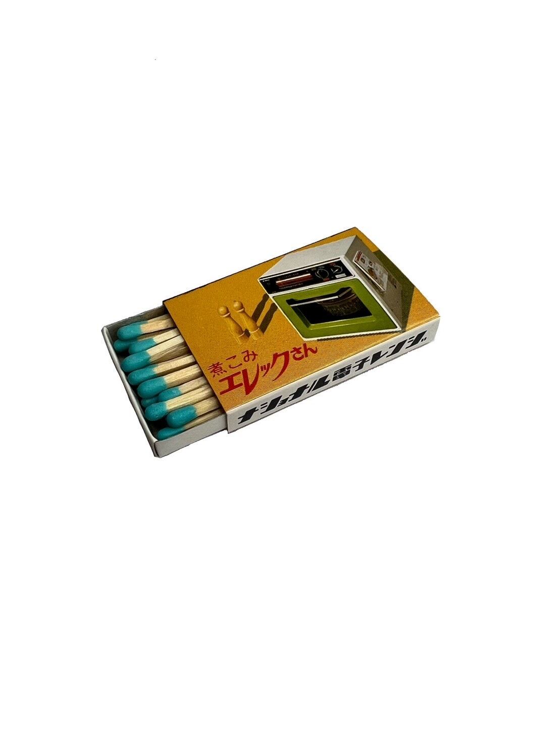 ポップな黄色にレトロな赤文字と家電のイラストがすごく可愛いマッチ箱です。